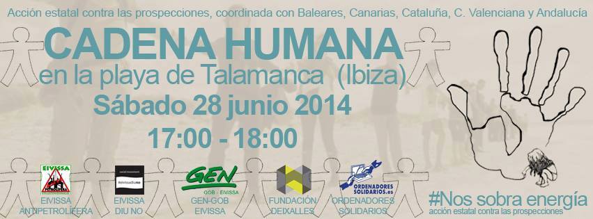 @Noudiari / Los colectivos contrarios a que se extraiga petróleo en zonas de gran valor ambiental han coordinado para mañana, sábado, diversas acciones de protesta en toda España. En Eivissa, está prevista un concentración en el Boulevar Abel Matutes a las diez y media de la mañana en la que los participantes deben asistir con camisetas negras y amarillas. Asimismo, por la tarde, a las cinco, se realizará una cadena humana en la playa de Talamanca. Todas las personas que quieran participar en la misma pueden hacerlo acudiendo con una camiseta negra que simbolice la marea negra que puede crear en las costas de las Pitiüses la extracción de hidrocarburos en el mar Mediterraneo.