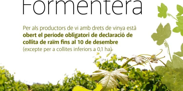 El Consell de Formentera, a través de l’àrea de Medi Rural, recorda que els productors de vi de Formentera que tinguin drets de vinya estan obligats a fer la declaració de la collita de raïm d’enguany fins al pròxim 10 de desembre.