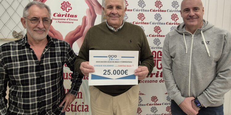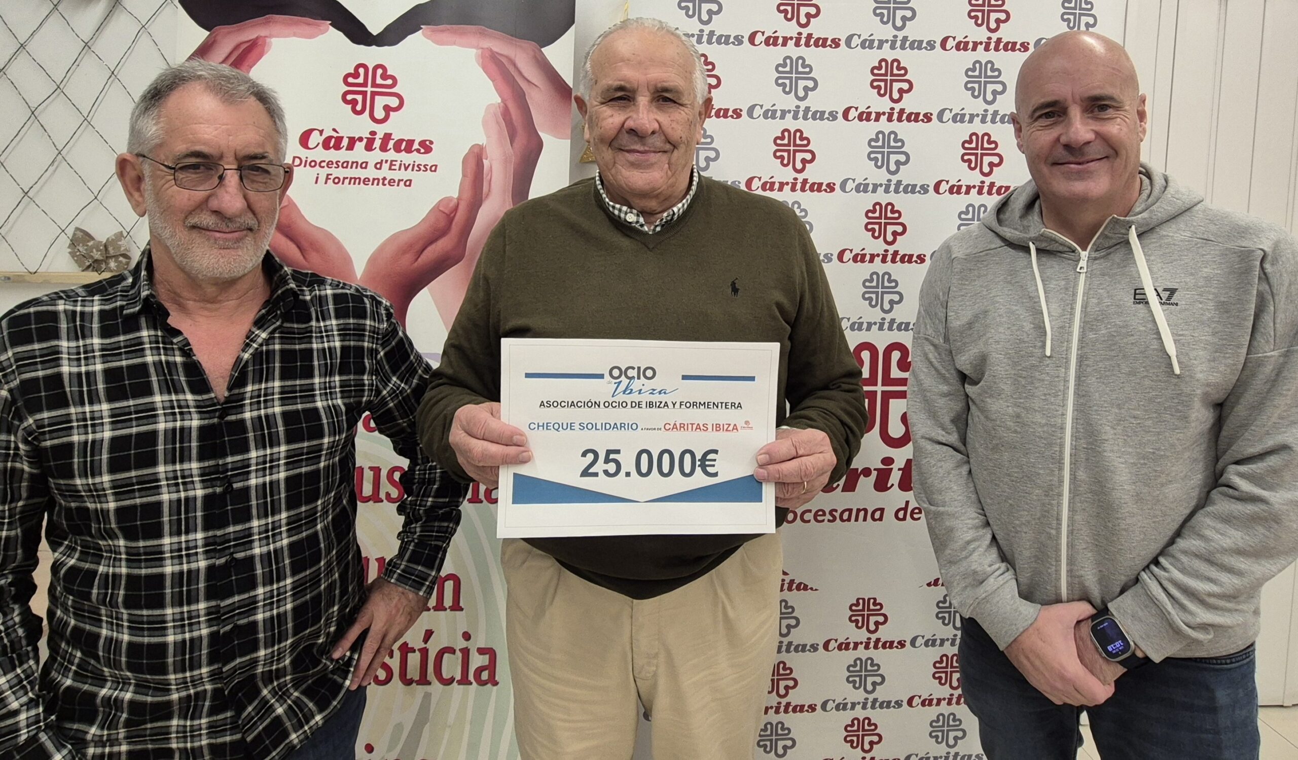 La Asociación Ocio de Ibiza y Formentera ha entregado un donativo de 25.000 euros a Cáritas Ibiza con el objetivo de reforzar la atención a las familias y personas más vulnerables de la isla, especialmente en estas fechas navideñas. La aportación se enmarca en la campaña de Cáritas “Hagamos que tener una vida digna deje de ser cuestión de suerte”.
