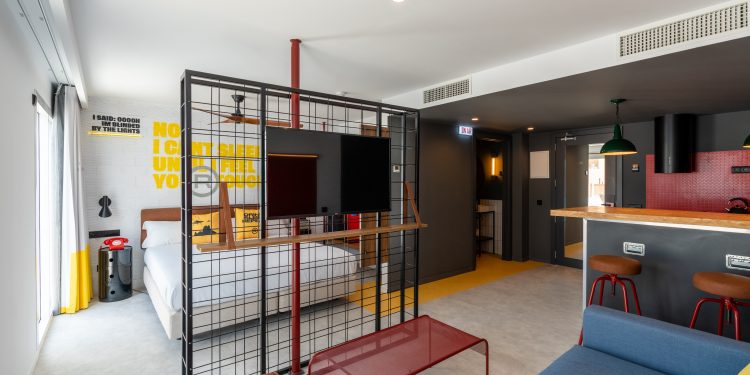 El nuevo hotel dispone de un total de 104 habitaciones con un estilo urbano, moderno y muy divertido, incluyendo todas una terraza privada y wifi de alta velocidad. Además, ofrece la posibilidad de reservar y disfrutar de Living Room, su habitación más especial con bola de discoteca, grifo de cerveza, bar, terraza, sofás, el lugar perfecto donde relajarse, reír, dormir, bailar y compartir.