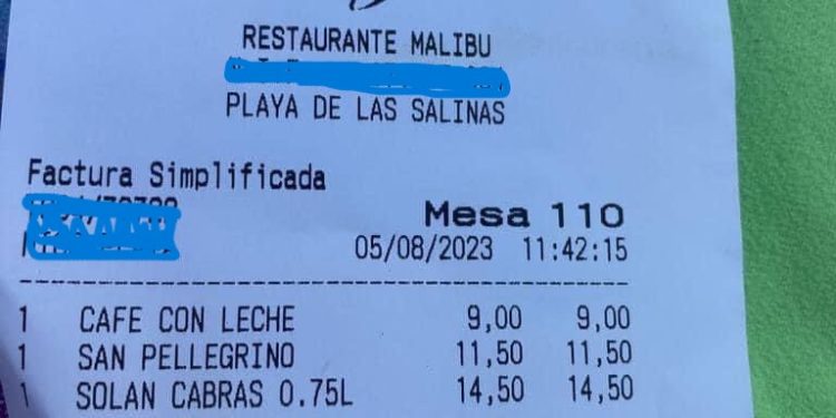 El tique, que es del pasado 5 de agosto, ha generado todo tipo de comentarios en redes sociales y pone de nuevo en el punto de mira los precios de muchos negocios de la isla.