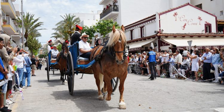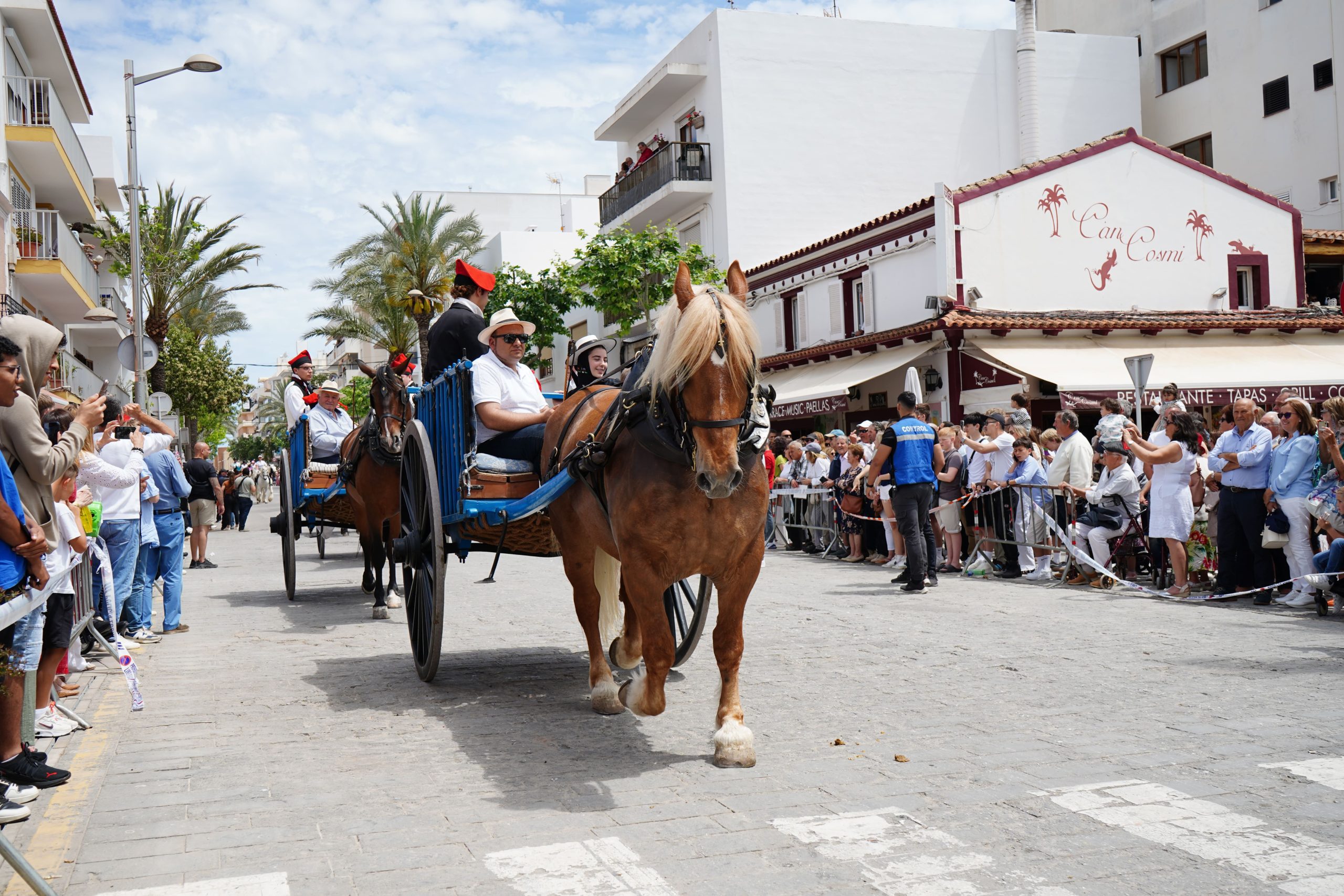 El uso de caballos está muy establecido en las celebraciones festivas de Ibiza, tales como fiestas patronales, que siempre incluyen desfiles de collas de baile payés, con bailadores, bailadoras, sonadors, vecinos y autoridades montados sobre los carros que forman parte del imaginario rural y patrimonial de la isla.