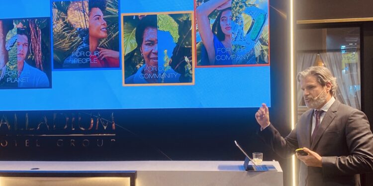 Jesús Sobrino, CEO de Palladium Hotels. hoy en la presentación de la cadena en el marco de Fitur. Foto Noudiari.