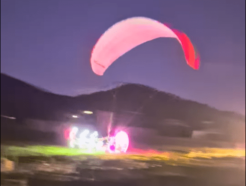 La figura de Papá Noel, claramente visible gracias a las luces decorativas del parapente, recorrió el cielo mientras algunos vecinos se sorprendían al contemplar el espectáculo.