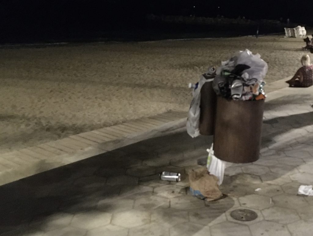 Se trata de una situación que es muy frecuente durante los meses de la temporada, con el aumento de la población y, en consecuencia, de las prácticas incívicas. A la vista está que hay quien, al ir a depositar sus basuras a estas papeleras y comprobar que están llenas, deja igualmente sus residuos, ya sea en el suelo o haciendo presión sobre las latas o botellas que ya hay. Por lo que algunos de estos envases también acaban en suelo, a muy pocos metros del mar.