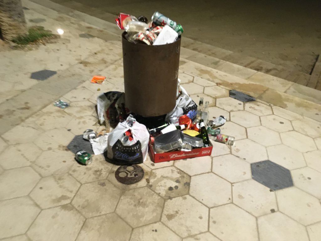 Ciertamente, las papeleras del paseo de ses Figueretes (o paseo de ses Pitiüses) se pueden encontrar a rebosar mucho antes de las once de la noche. El día 10 de agosto una lectora de Noudiari hizo llegar a este diario una fotodenuncia sobre una papelera del paseo, asegurando que, entre las 18.00 y las 18.30, la mayoría de ellas se encontraban a rebosar, lo que impide a muchos vecinos y turistas poder depositar nada en ellas. Aun así, hay quien lo hace igualmente, con el resultado de que este tipo de imágenes se han convertido en cotidianas durante el verano.