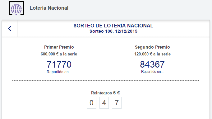 Números agraciados con el primer y segundo premio del sorteo de la Lotería Nacional
