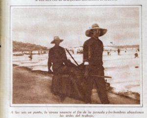 A las seis en punto sonó la sirena. Muchos hombres se tiraron de bruces sobre los montones de sal. Se sentaron otros pensativos, indecisos, sobre el camino que debían tomar para regresar a sus casas…»