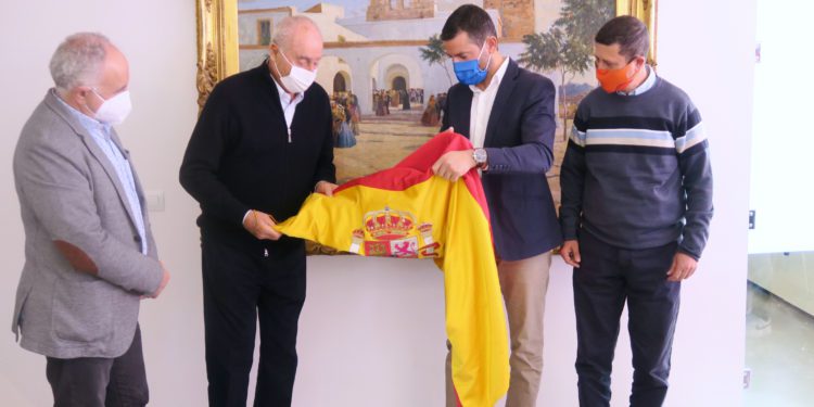 El Ayuntamiento de Sant Antoni ha recibido esta mañana la cesión de una bandera de España por parte de Pepe Roselló, empresario y vecino de Sant Antoni. La bandera estuvo colgada del parral de Can Bonet, en la esquina de las calles Sant Mateu y Sant Antoni, el pasado 17 de agosto de 2020 con motivo de la visita de los Reyes, Felipe VI y Letizia Ortiz, dentro de la gira que realizaron por los principales enclaves turísticos de España para conocer el impacto de la pandemia.