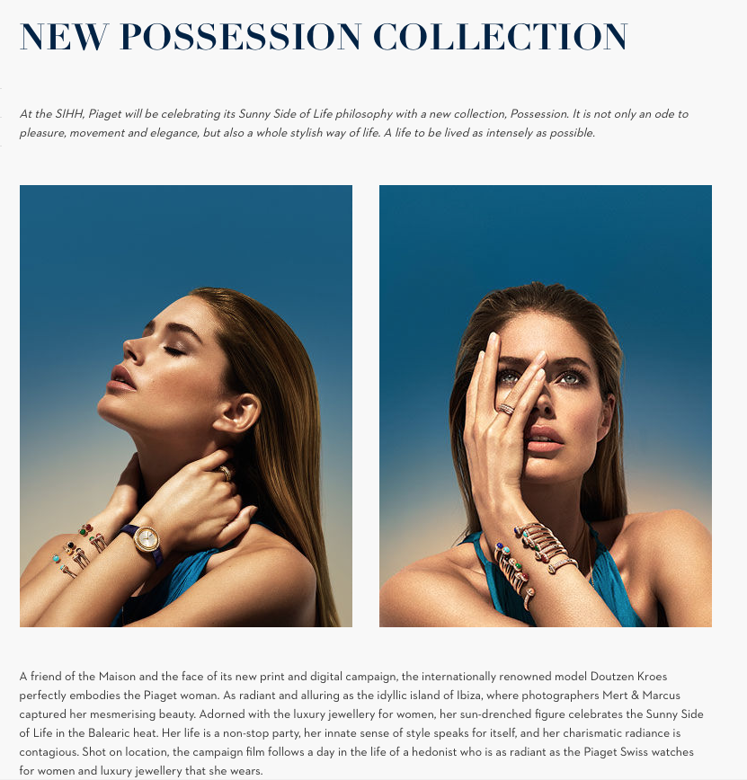 @Noudiari/La firma Piaget ha fotografiado en Ibiza a la modelo Doutzen Kroes para su nueva campaña de alta joyería Possession. En esta ocasión, la supermodelo y actriz holandesa, conocida por haber sido uno de los ángeles de Victoria’s Secret, ha posado para los fotógrafos Mert y Marcus con relojes para mujeres y joyas de lujo de la marca.