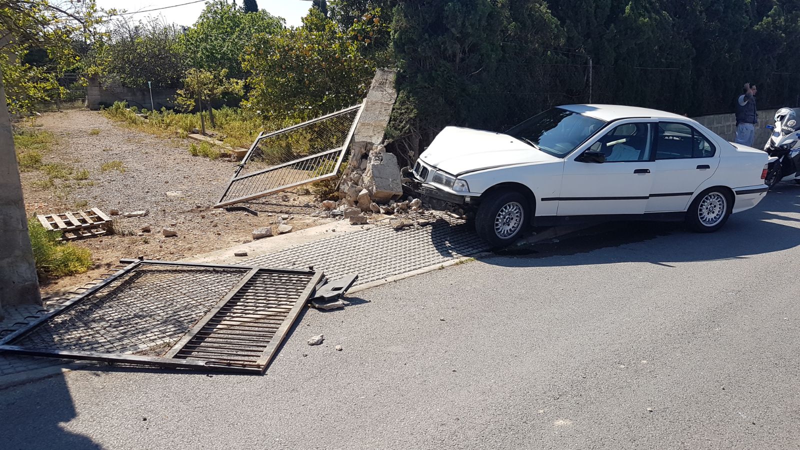Imagen del coche empotrado contra un muro en ses Païsses.