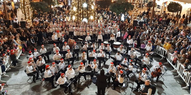 En Santa Eulària, unos 80 alumnos del Coro de la Escuela Municipal de Música han interpretado, junto con la Banda Juvenil Municipal y algunos músicos que han accedido a colaborar, las piezas ‘Estrella Boreal’ (Francisco Martínez), ‘Jingle Bell Rock’ (M. Story) y ‘Recull Nadalenc’ (arreglo de Francisco Martínez).