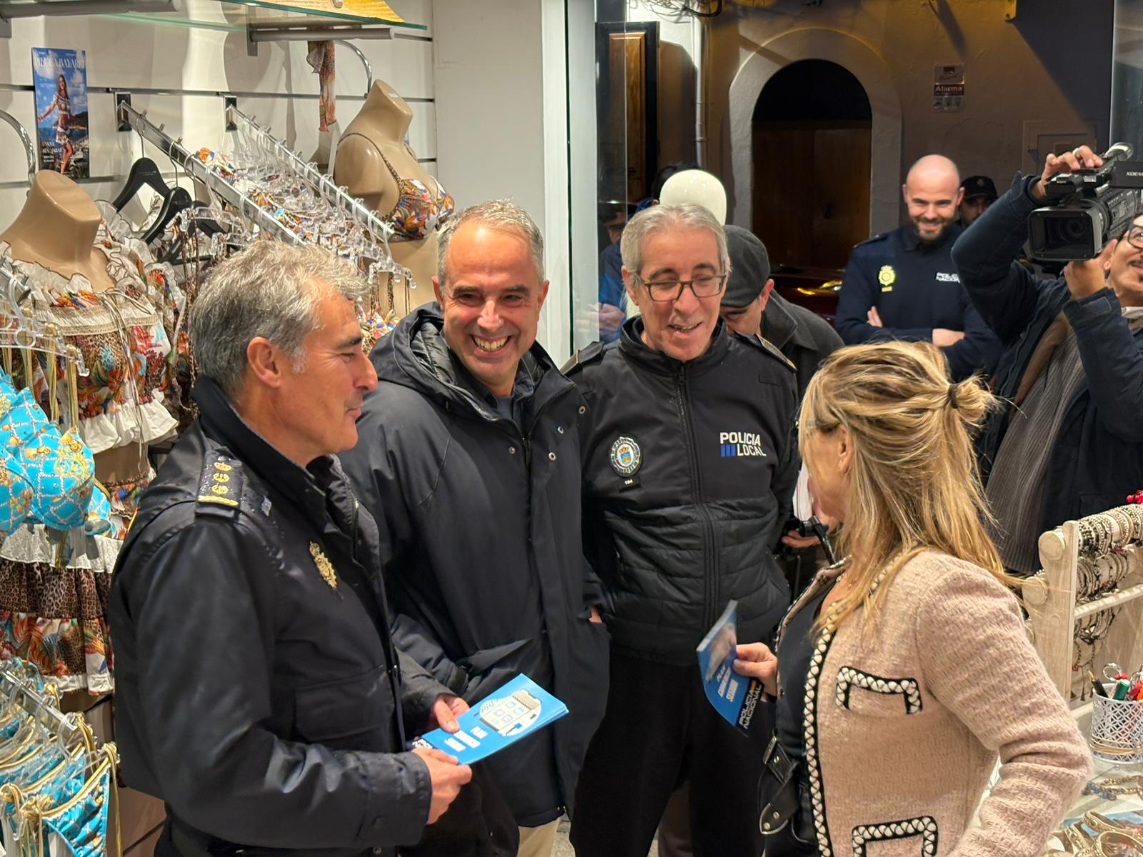 Policía Local y Nacional visitaron ayer comercios de la ciudad para presentar el Plan de Comercio Seguro en Navidad.