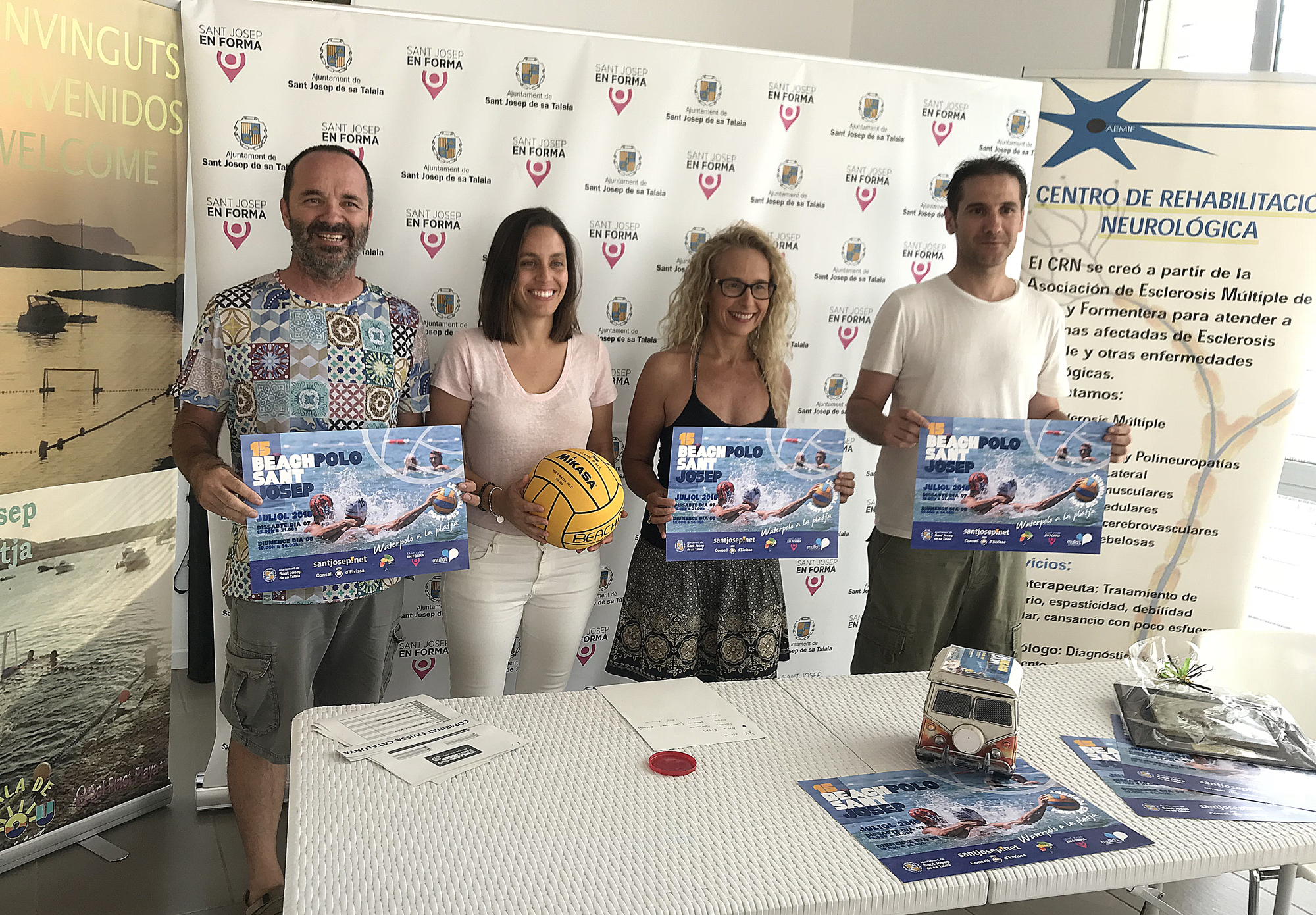 @Noudiari / La playa de Port des Torrent acoge este fin de semana la 15a edición del Beach Polo Sant Josep con la participación de un total de 7 equipos, procedentes de Bélgica, Madrid, Cataluña e Ibiza. Las regidoras de Deportes, Ana Ribas, y de Turismo, Helena Benlloch, han presentado hoy este torneo, acompañadas por el coordinador de las Piscinas Municipales y del Beach Polo, Eugeni Palacios, y por el presidente de la Asociación de Esclerosis Múltiple de Ibiza y Formentera, Rubén Muñoz. Al acto, celebrado a las Piscinas Municipales de Sant Josep, han asistido también varios waterpolistas, que han presenciado en directo el sorteo de los grupos que competirán sábado a partir de las 15 horas.