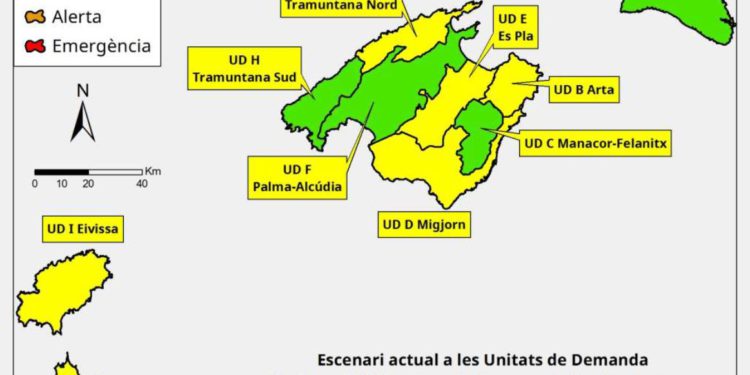 En relación con las Unidades de Demanda (UD) en las que se organiza Baleares, seis de las diez se encuentran en escenario de prealerta, que son las de Ibiza, Formentera, Tramuntana Nord, Pla, Migjorn, y a la que ahora se suma la UD Artà.