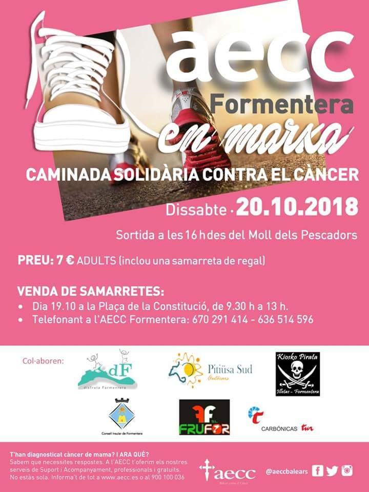 A més, s’ha organitzat una caminada solidària contra el càncer que tindrà lloc el dissabte 20 d’octubre amb sortida a les 16h des del Moll de Pescadors de la Savina. La inscripció té un preu de 7 euros i inclou una samarreta de regal.