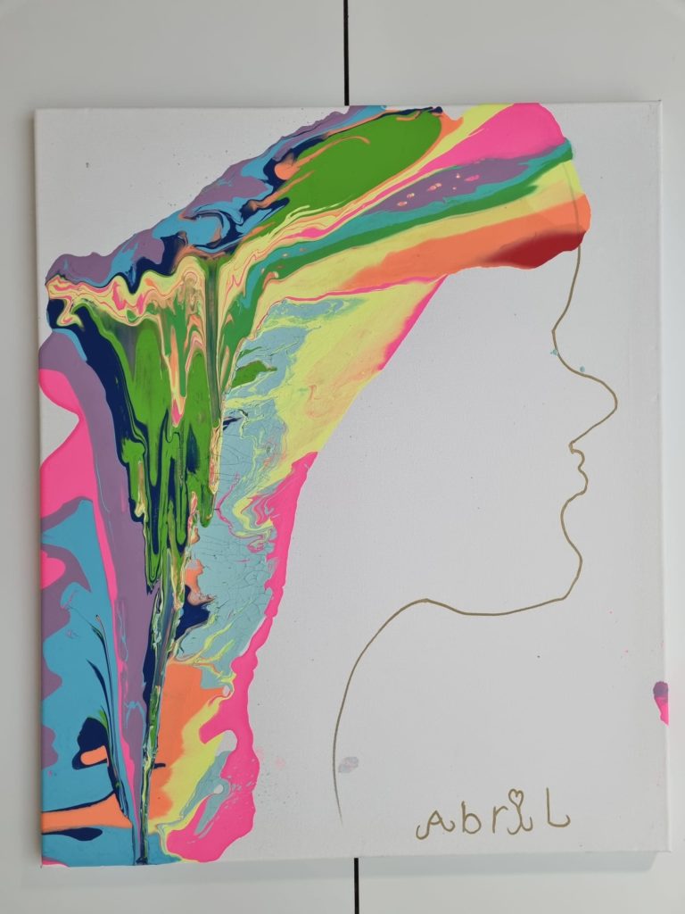 «Os animo a nunca dejar de luchar, ya que solo persiguiendo los sueños, se consiguen», dice Abril frente a sus cuadros. Hoy es una niña fuerte y muy vital, que de mayor quiere ser veterinaria y científica y trasladar esos conocimientos a la robótica.