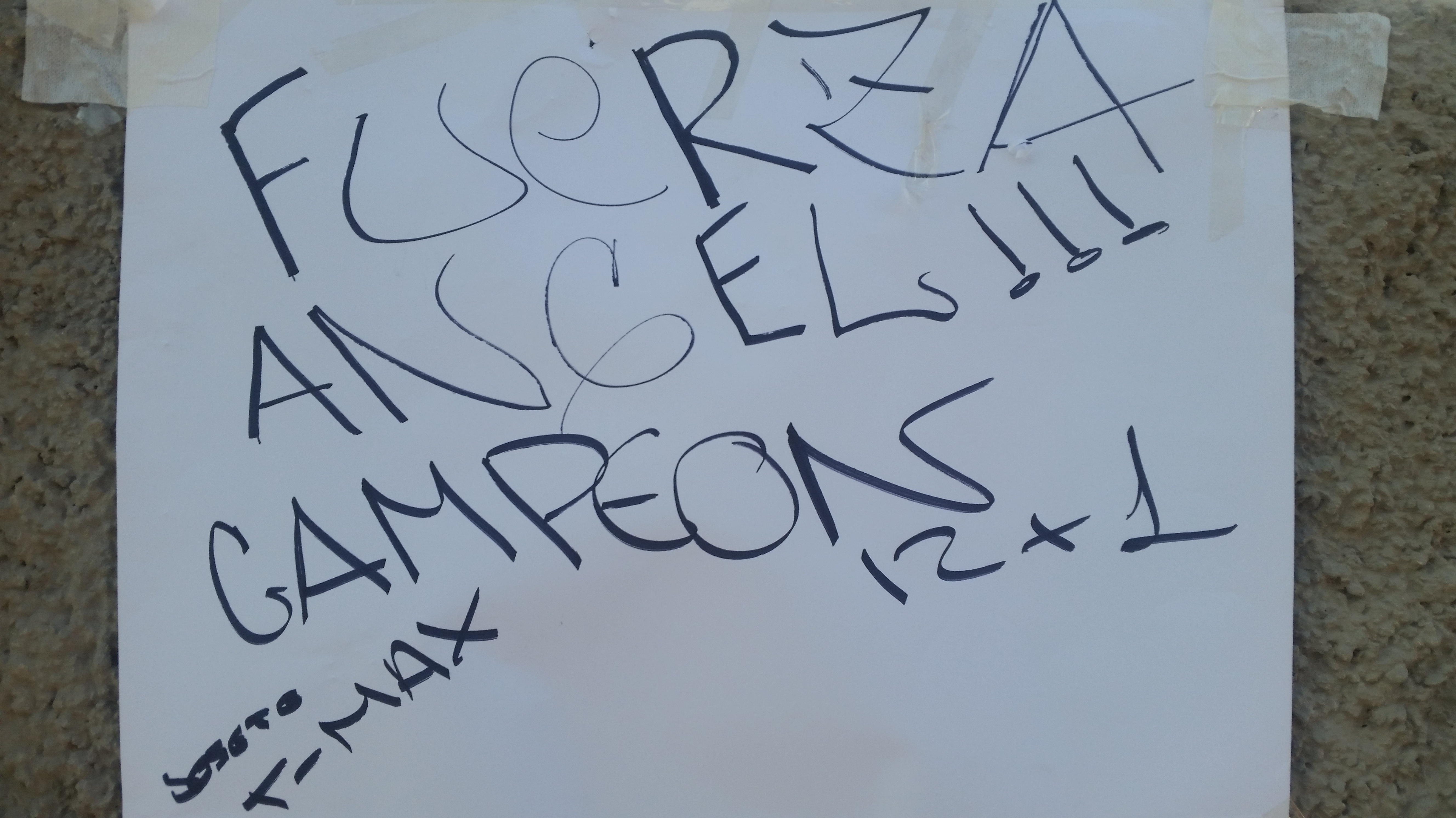 En las paredes de la Policlínica algún admirador ha colgado una cartulina con un mensaje de ánimo para el expiloto.