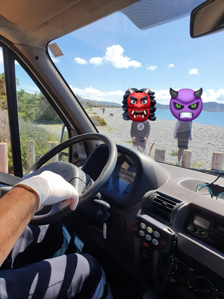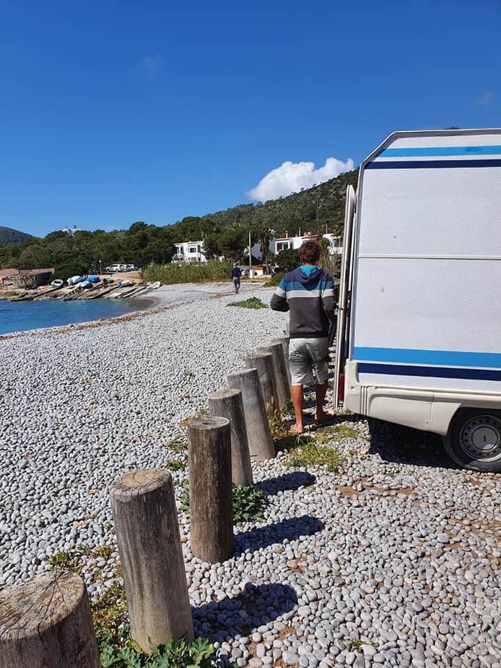@Noudiari / Protección Civil de Sant Josep, que da apoyo a la Policía Local y a la Guardia Civil informando a los ciudadanos de los medidas del estado de alarma, se topó ayer domingo con algunas personas en la playa de es Codolar, paseando o haciendo running.