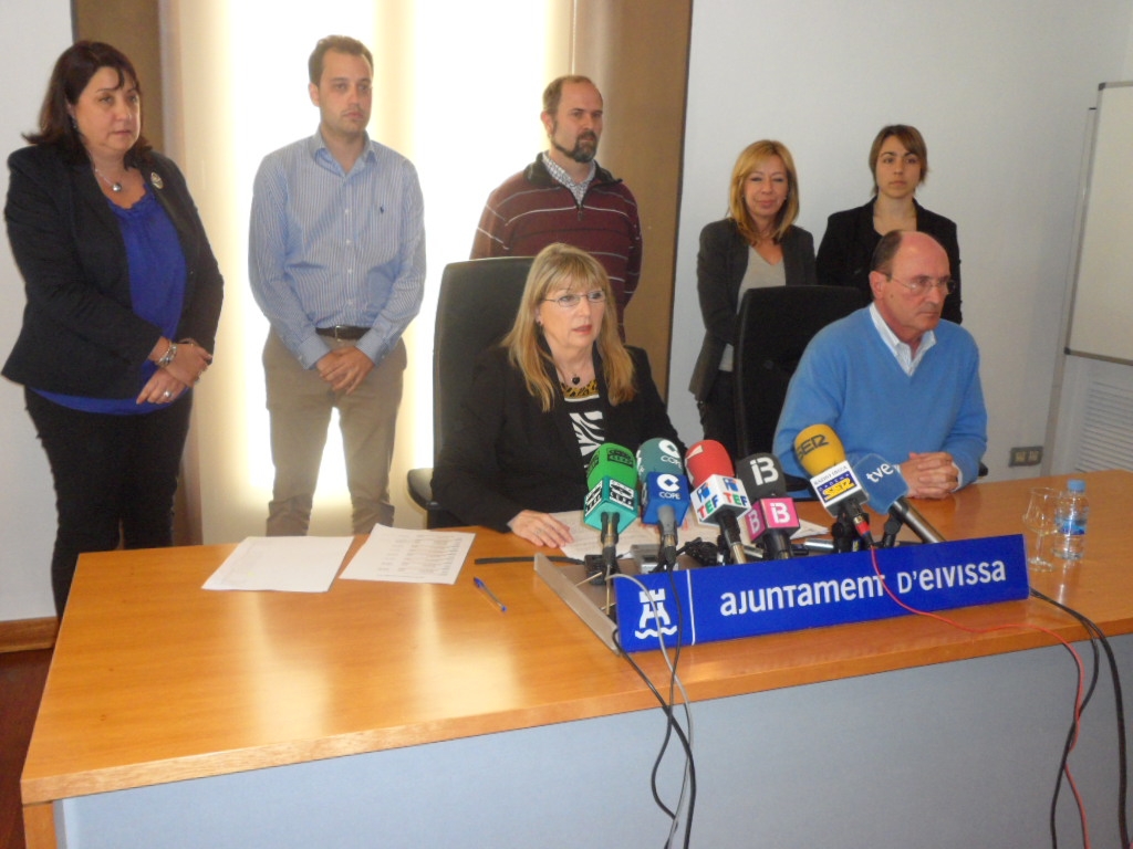 La alcaldesa de Vila y los concejales del PP, en su comparecencia ante los medios para explicar las facturas al Grupo Prensa Pitiusa