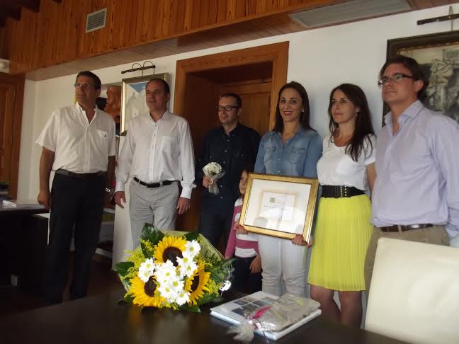 @Noudiari / L’alcalde de Santa Eulària des Riu, Vicent Marí, ha rebut aquest matí a María Gracía Peralta, la guanyadora del concurs ‘bloggin Santa Eularia’ organitzat conjuntament pel Consistori i l’Estació Nàutica. Peralta ha arribat aquest mateix matí des de Toledo amb la seva parella, Alberto Pingarrón, i la seva filla de cinc anys, Jimena. Tots tres disfrutaran d’una setmana d’allotjament, amb activitats incloses i sopars a diferents establiments associats a l’Estació Nàutica, representada aquest matí pel seu president Antoni Guasch i la seva gerent, Pilar Ruiz. A més, disposaran d’un premi en metàl·lic de 600 euros. Es dona la circumstància que el blog guanyador tractava sobre el somni de Peralta de casar-se al Puig de Missa de Santa Eulària, un desig que es farà realitat aquest dissabte.