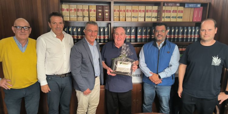 A la Asamblea General ha acudido el Presidente de PIMEEF, Alfonso Rojo, quien le ha entregado una placa a Gonzalo González por sus años de servicio en la asociación empresarial.