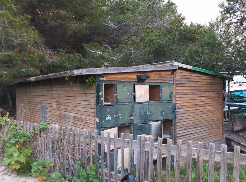 La playa de Ses Salines ha quedado libre de una antigua estructura de madera que se encontraba en estado de abandono. Los trabajos, realizados entre el 9 y el 11 de abril, han consistido en el desmantelamiento y la retirada total de los materiales, despejando así esta zona del entorno protegido