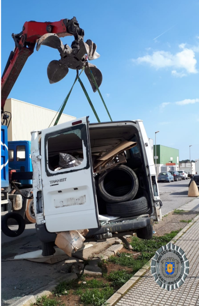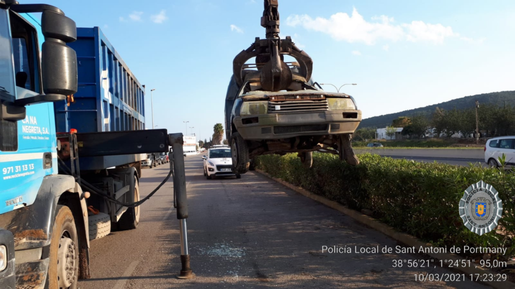 NouDiari / La Policía Local de Sant Antoni ha intensificado esta semana la retirada de vehículos abandonados de la vía pública en la zona del polígono de Montecristo, «zona donde se acumulan de forma habitual coches deteriorados y abandonados por su propietario», explican en un comunicado.