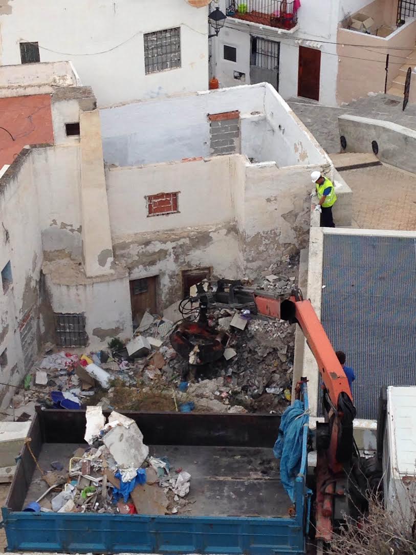 Las cinco toneladas de basura han tenido que ser retiradas con un camión grúa debido al desnivel que presenta este solar y han intervenido dos trabajadores de la empresa de limpieza custodiados por la Policía Local de Ibiza.