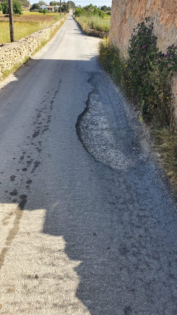 Des del grup, han recordat que «les dues són vies alternatives molt transitades i a l’estiu donen accés a un nucli turístic de l’illa amb molta activitat». «A més, el trànsit de vehicles s’ha vist notablement incrementat pel desviament de les obres del tercer cable. Aquests fets han comportat un deteriorament dels ferms de les vies, les parets de pedra a les voreres han patit enderrocs i les arquetes o tapes que hi ha a aquestes vies s’han trencat per l’augment també del trànsit de vehicles pesants», afegeix la nota.