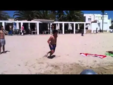 @Noudiari / Es la nueva moda de diversión implantada por los jóvenes en las playas de Ibiza. Consiste en enterrar una pelota gigante de plástico en la arena y utilizarla como plataforma de impulso para y saltar dando volteretas por los aires, entre otras piruetas como las que pueden apreciarse en el vídeo, que ha sido tomado esta mañana en la playa de Talamanca, en Vila.