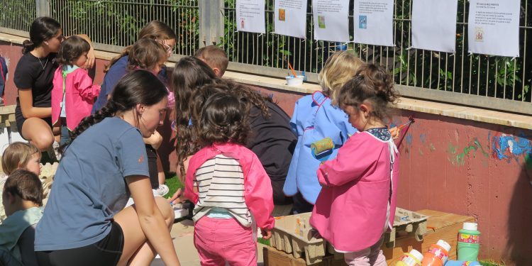 La directora también ha explicado que el proyecto ha contado con la colaboración de alumnos del IES Quartó de Portmany, muchos de ellos exalumnos de la escoleta, que han participado hoy en la elaboración de la pancarta que preside este espacio. En este sentido, ha agradecido que el instituto se haya involucrado, ya que “es muy importante la colaboración y la creación de esta comunidad educativa”. Por su parte, los alumnos de la escoleta han decorado la pared exterior del centro con pintura.