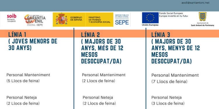 El Ayuntamiento de Sant Antoni de Portmany tiene previsto contratar a 22 personas desocupadas en el marco de la convocatoria SOIB Reactiva 2021. Esta convocatoria tiene como objetivo dar respuesta en materia de fomento de la ocupación y otorgar una asistencia específica tanto a los colectivos habituales con necesidad de ocupación (jóvenes parados y parados de larga duración) como otros colectivos emergentes que han quedado afectados por la parada de la actividad económica que ha provocado la COVID-19.