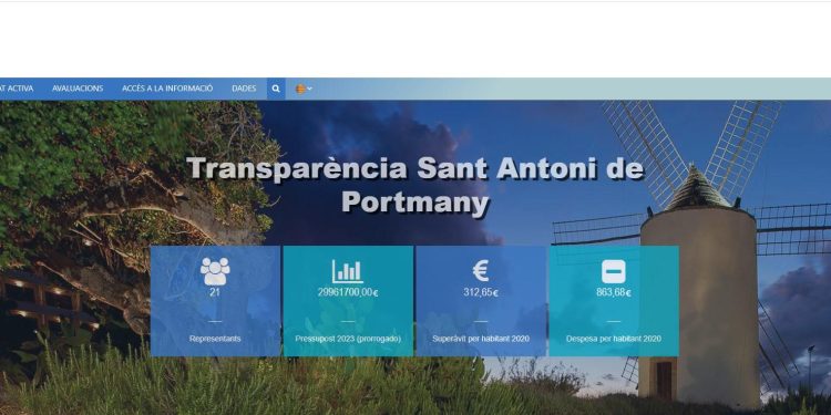 El Ayuntamiento de Sant Antoni de Portmany ha estrenado esta semana el nuevo portal de transparencia del Consistorio con datos actualizados y más accesibles y visuales para los usuarios. La publicación de este nuevo portal (https://transparencia.santantoni.net/t) con la actualización de la información ha posicionado al Consistorio como el cuarto Ayuntamiento más transparente de las Illes Balears y el segundo de la isla de Eivissa, con un 77,78% de cumplimiento del índice de Dyntra (la plataforma independiente que audita la información pública que ofrecen las instituciones). De un total de 163 indicadores, el Ayuntamiento cumple a día de hoy con un total de 126.