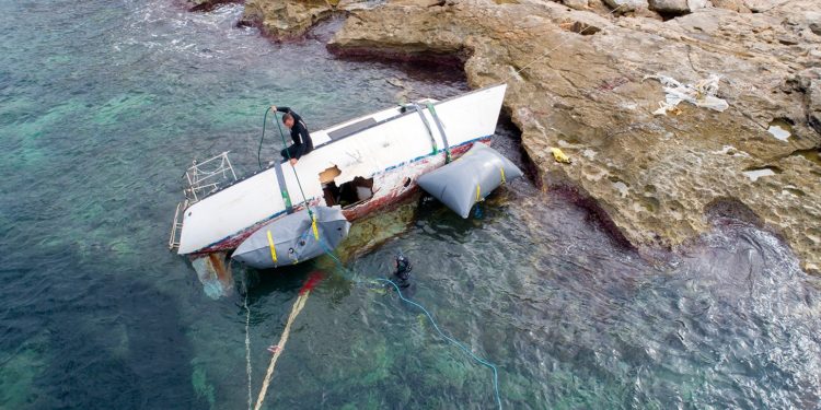 En el caso de este velero, ha sido necesario invertir casi 12.000 euros para poder efectuar su retirada debido a que, por su ubicación, era inviable poder retirarlo por tierra.