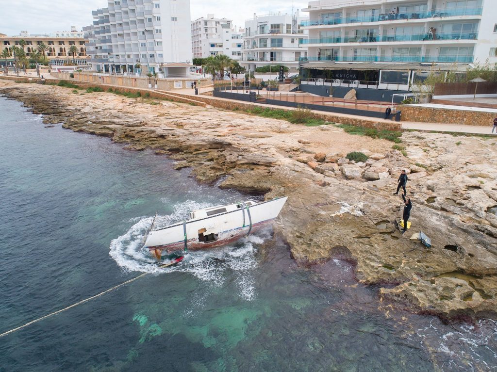 El departamento de Medio Ambiente del Ayuntamiento de Sant Antoni ha retirado el velero que había encallado cerca de la playa de Caló des Moro. La embarcación había estado fondeada de forma irregular en esta zona y tras un temporal en el mes de septiembre acabó varada en la zona rocosa del litoral.