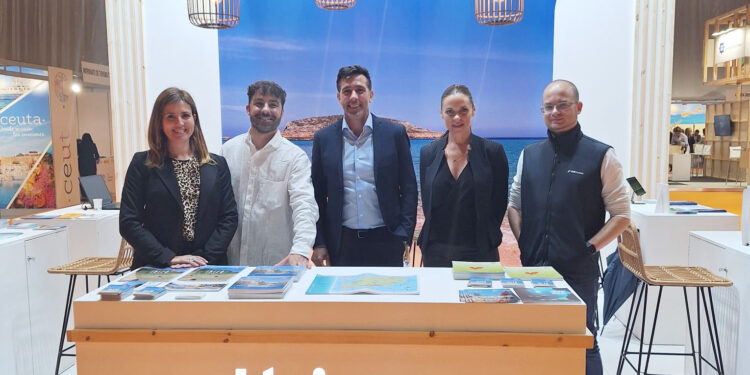 El alcalde Rafael Triguero, en el centro de la imagen, en el stand de la ciudad en la WTM. / AE