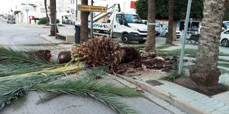 El Ayuntamiento de Sant Antoni ha talado cuatro palmeras del municipio que presentaban deficiencias estructurales y presentaban un riesgo alto de fractura o caída.