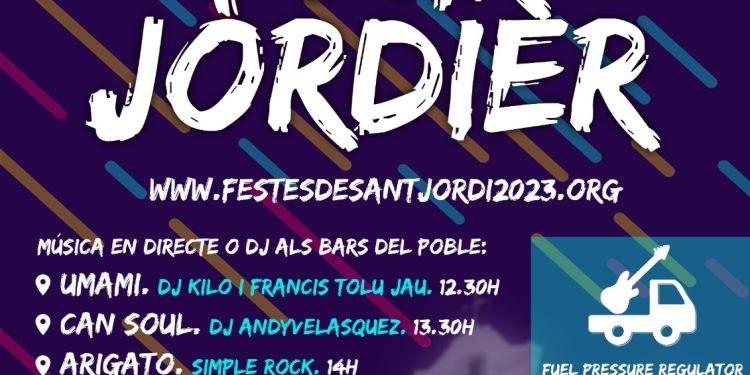 El IX Tour Jordier convoca els més marxosos a gaudir de la bona música que han programat una desena de bars i restaurants de Sant Jordi a partir de les 13.30 hores. Així, a la majoria de negocis del poble hi desfilaran bandes en viu i dj per animar l’hora de l’aperitiu i fins a la posta de sol amb consumicions a preus populars i amb molta animació també als carrers, per on circularà l’escenari mòbil on hi actuaran Fuel Pressure Regulator i ZZ Rock. El final de festa està programat a les 19 hores, quan el dj Toni Bali i després John Granados es posaran en feina a la plaça de Sant Jordi per escalfar el públic per Joven Dolores, el grup eivissenc que tocarà els seus nous temes.