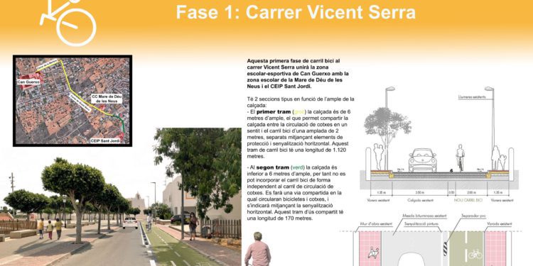 La construcción del carril bici, que sale de la zona deportiva de Can Guerxo por la calle de la Mèrlera y se desvía en la calle Vicent Serra hacia el CEIP Sant Jordi, tendrá una duración de cinco semanas con un coste que no llega a los 40.000 euros.