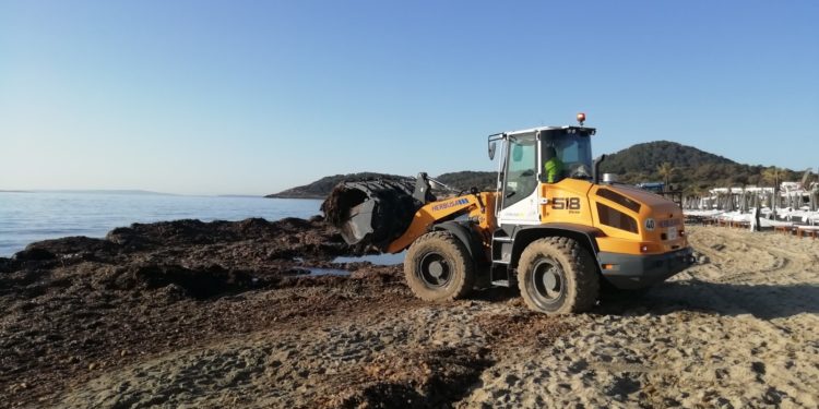 Avui dia, es treballa amb els dos tractors previstos -un destinat a Platja d’en Bossa i un altre que treballa ara mateix a les platges de Cala de Bou- per al servei de retirada de les fulles de Posidònia oceànica, amb el reforç d’un tercer, que també s’ha enviat a la zona de Platja d’en Bossa perquè és on l’acumulació està sent més important.