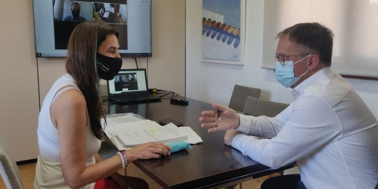 La regidora de Vivienda, Guadalupe Nauda y el conseller balear de Vivienda, Josep Marí Ribas ‘Agustinet’, se han reunido hoy en el Ayuntamiento de Sant Josep para abordar los problemas de la vivienda en el municipio. Entre otras cuestiones, la regidora ha aportado diversa documentación sobre casos de posibles grandes tenedores de pisos que Marí Ribas se ha comprometido a contrastar con lo que figura en el registro autonómico.