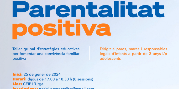Aquest programa, que es desenvoluparà un any més a càrrec de les educadores socials del municipi, Belén García i Noemí Boned, està dirigit a pares, mares i responsables legals de nens a partir de 3 anys i/o adolescents, es durà a terme en el CEIP L’Urgell a partir del 25 de gener de 2024. Les sessions es duran a terme tots els dijous de 17.00 a 18.30 hores, estenent-se al llarg de 8 sessions.