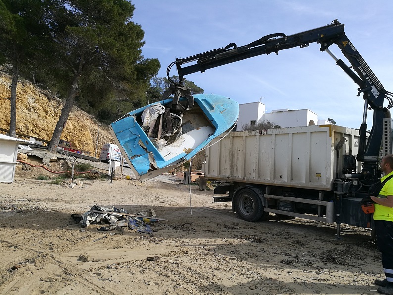 Después de varias conversaciones con Demarcación de Costas, finalmente ha sido el Consistorio josepí quien se ha hecho cargo de la retirada estos elementos, de los cuales no se ha podido identificar a los propietarios. Se encontraban sobre la arena a los extremos de Cala Vedella sin ninguna identificación ni marca que permita dar con sus dueños.