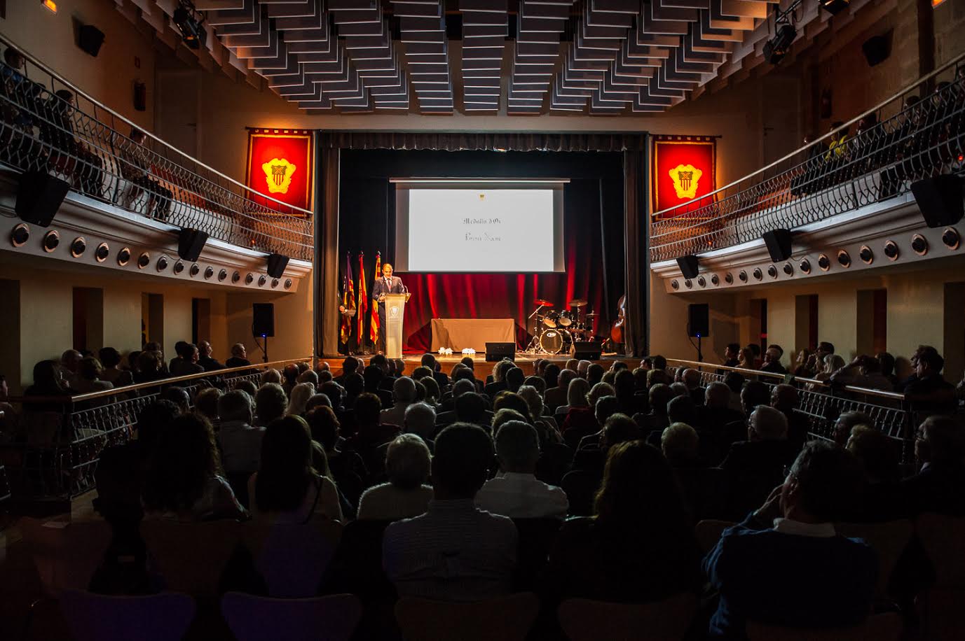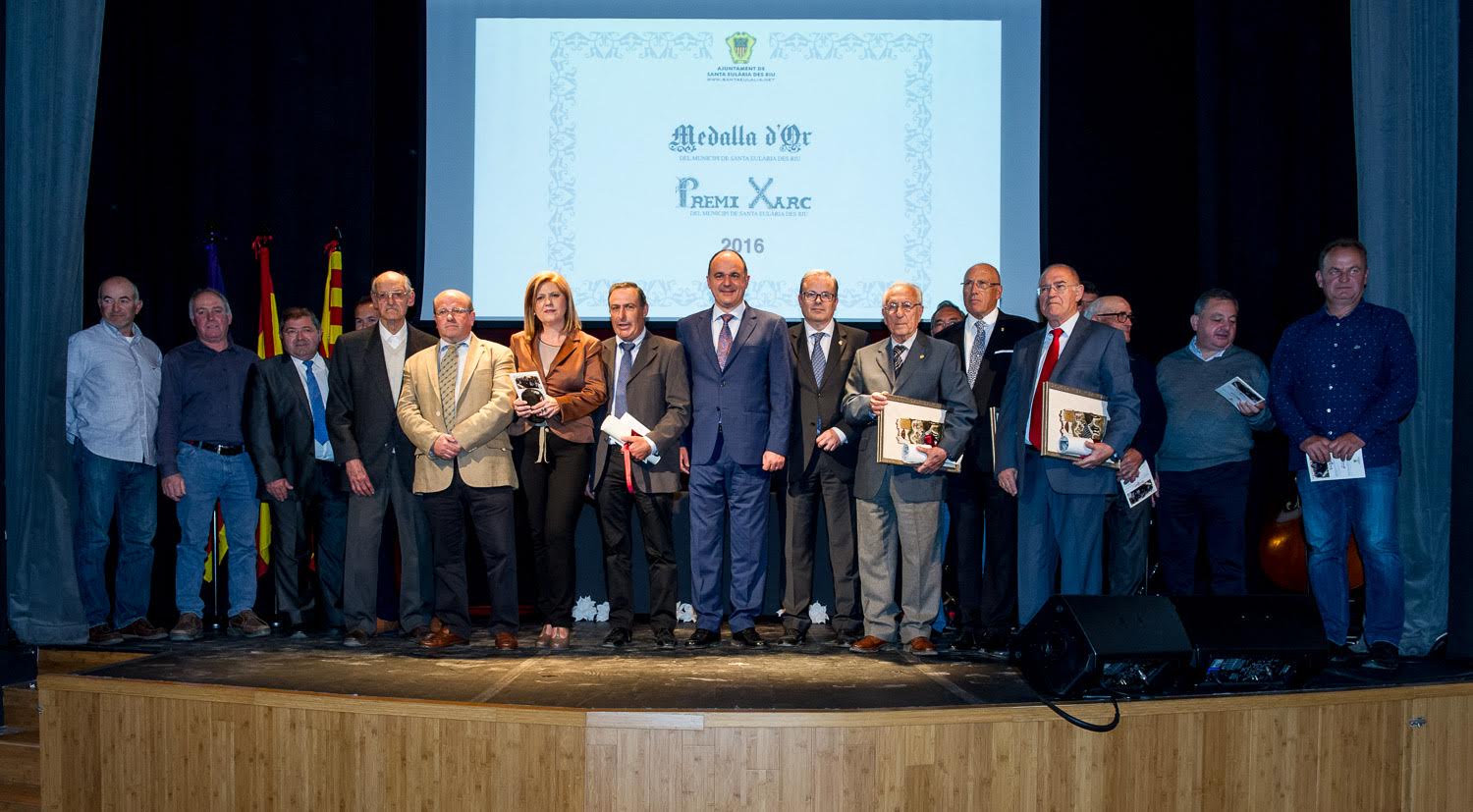 @Noudiari/ El Teatro España va acollir ahir a la tarda la gala de lliurament de la Medalla d’Or de Santa Eulària des Riu i cinc premis Xarc a diferents personalitats o entitats del municipi que han destacat per les seves aportacions a la vida social i econòmica del municipi, encara que també s’ha premiat el valor cultural i el respecte a la imatge i l’essència típica de l’illa. L’alcalde, Vicent Marí, a més d’agrair la seva tasca a tots els premiats ha aprofitat per a destacar el valor de la declaració de les Festes de Maig com a Festa d’Interès Cultural per part del Consell Assessor de Cultura Popular i Tradicional de les Illes Balears.