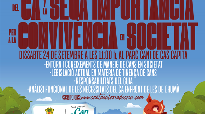 El departamento de Medio Ambiente del Ayuntamiento de Santa Eulària des Riu y la empresa Can Dog, adjudicataria del Servicio de Acogida de Animales, organizan el taller ‘La elección del perro y su importancia para la convivencia en sociedad’. La actividad tendrá lugar en el parque canino de Cas Capità el próximo sábado, 24 de septiembre, a las 11 horas. Las inscripciones se pueden realizar en la página web www.santaeulariadesriu.com.