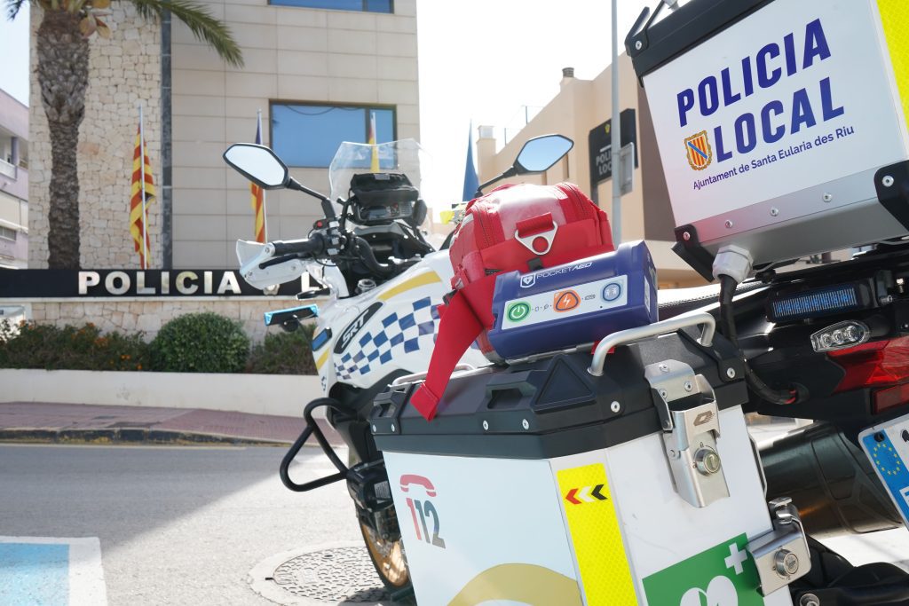La Policía Local de Santa Eulària se ha convertido en la primera de Baleares en incorporar desfibriladores portátiles personales. Se trata de un avance significativo en materia de emergencias, ya que permitirá reducir los tiempos de respuesta y mejorar la atención inmediata a la ciudadanía.