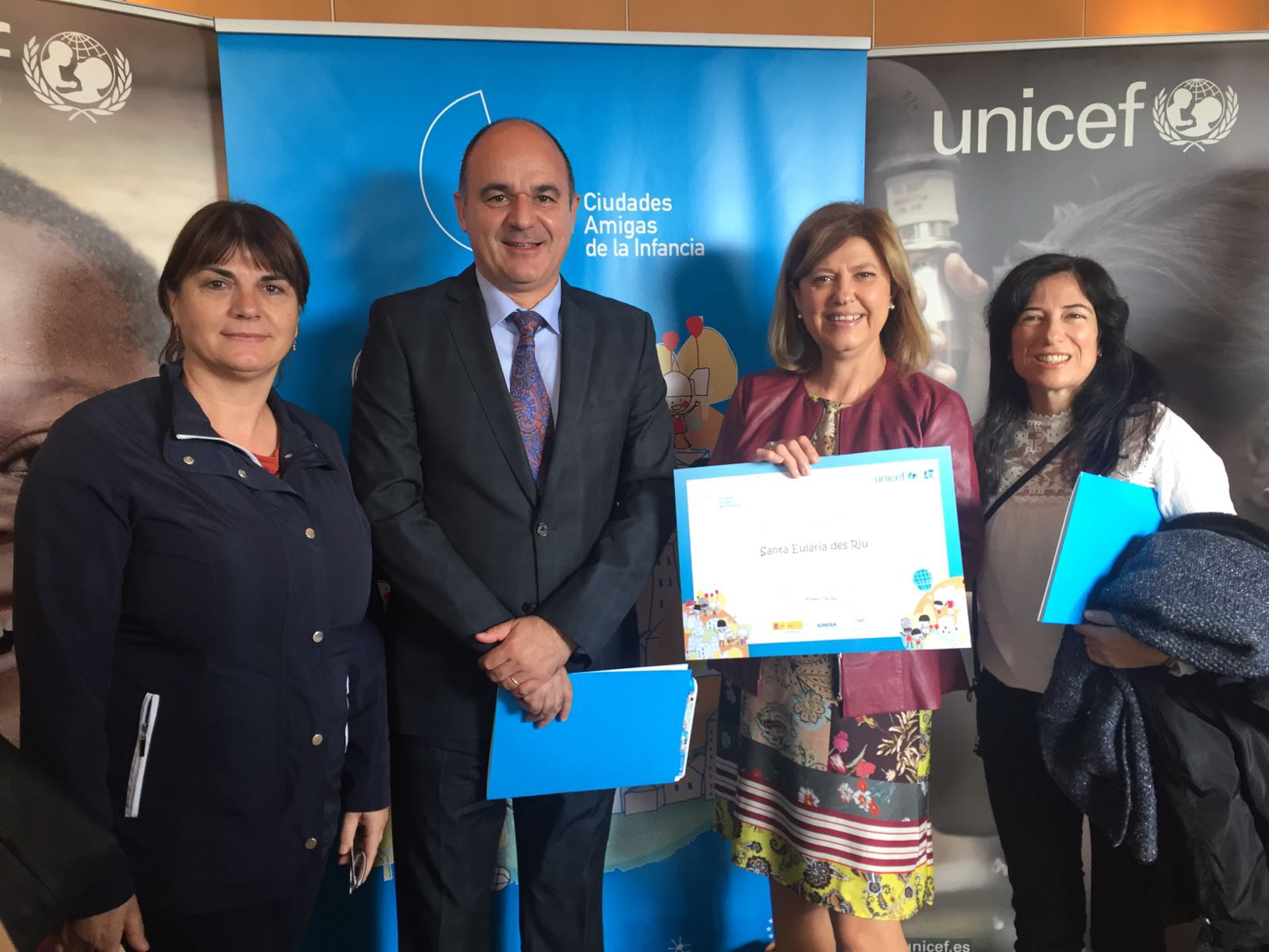 Santa Eulària des Riu renova així fins a 2020 el segell que va obtindre fa quatre anys (i que el va convertir en el primer municipi Amic de la Infància de tot Balears) i que suposa un reconeixement a la feina desenvolupada pel Consistori de cara a incloure els interessos dels infants i adolescents del municipi dins dels seus projectes, impulsant la participació dels menors en la pressa de decisions i en la configuració de nous espais i noves actuacions que els afecten.