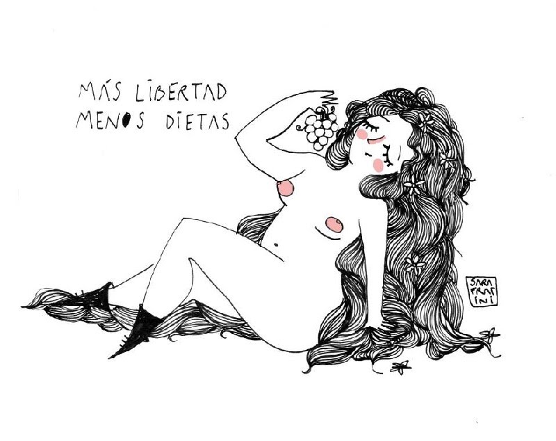 Yo crecí en Venezuela y con 18 años ya había hecho todas las dietas posibles. Allí existe una presión enorme para que seas delgada, perfecta, que no te sobre ni un rollito… Sin embargo, cuando vine a España a estudiar mis amigos me liberaron de esa presión y me relajé. Al mismo tiempo, mis dibujos comenzaron a engordar, como comentaba, y a conectar mejor con el público.
