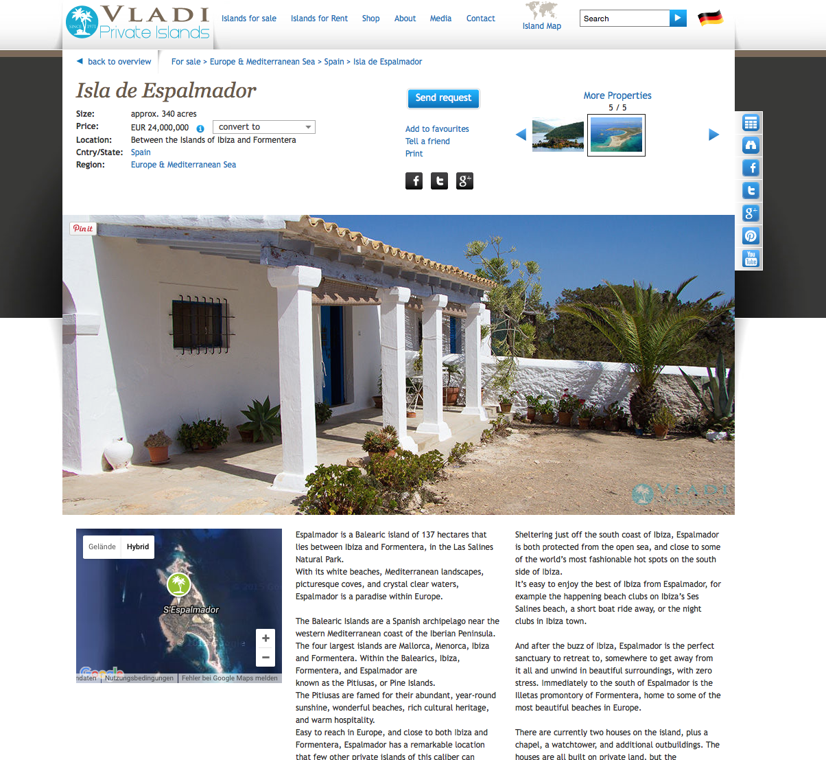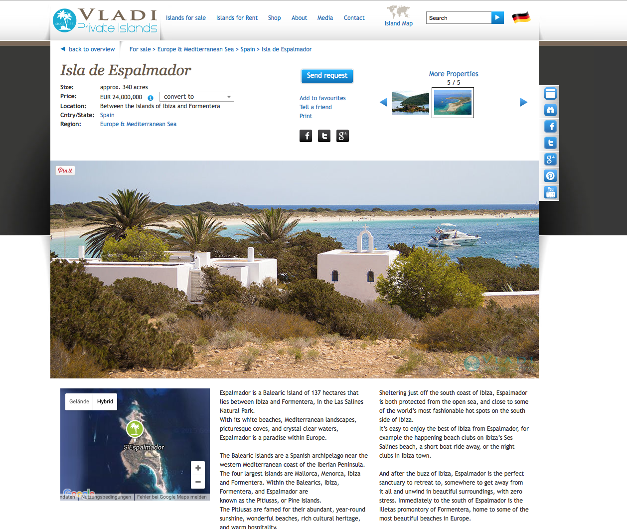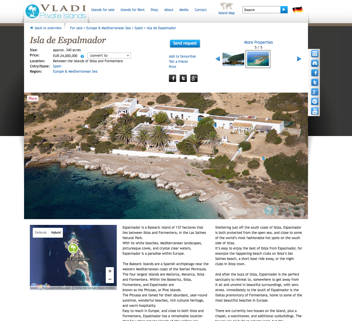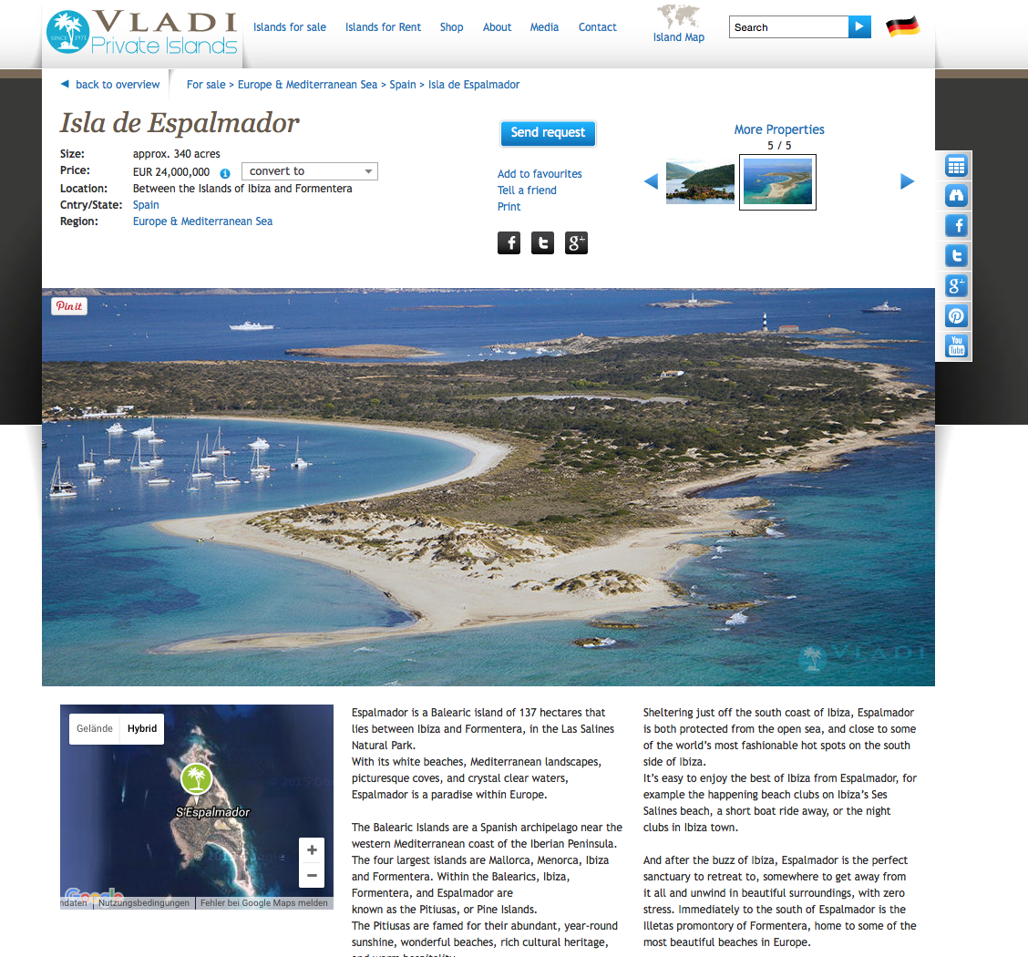 @Noudiari/ Una página web, Vladi Private Islands ,ya incluye entre sus ofertas la venta del islote de s’Espalmador por 24 millones de euros. En la descripción, se califica s’Espalmador como un «paraíso dentro de Europa».
